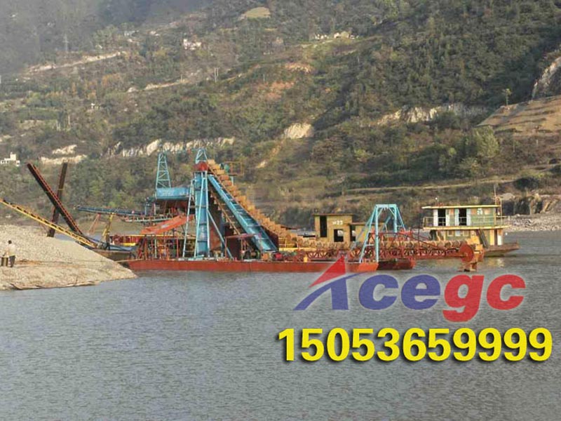 另外一種是河道采沙金設(shè)備,大部分指的是沙金淘洗設(shè)備船舶類,常見的有鏈斗式采沙金機(jī)械,鉆探式采沙金設(shè)備,小型采沙金設(shè)備等,下圖為冠誠重工生產(chǎn)的鏈斗式采沙金設(shè)備,通過鏈斗挖出沙石,通過配備溜槽,離心機(jī),跳汰機(jī)等沙金選別設(shè)備進(jìn)行沙金洗選。