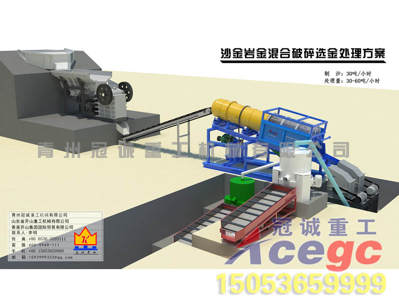 每小時制沙30噸,處理量30-60噸沙金巖金混合選金處理設(shè)備處理方案